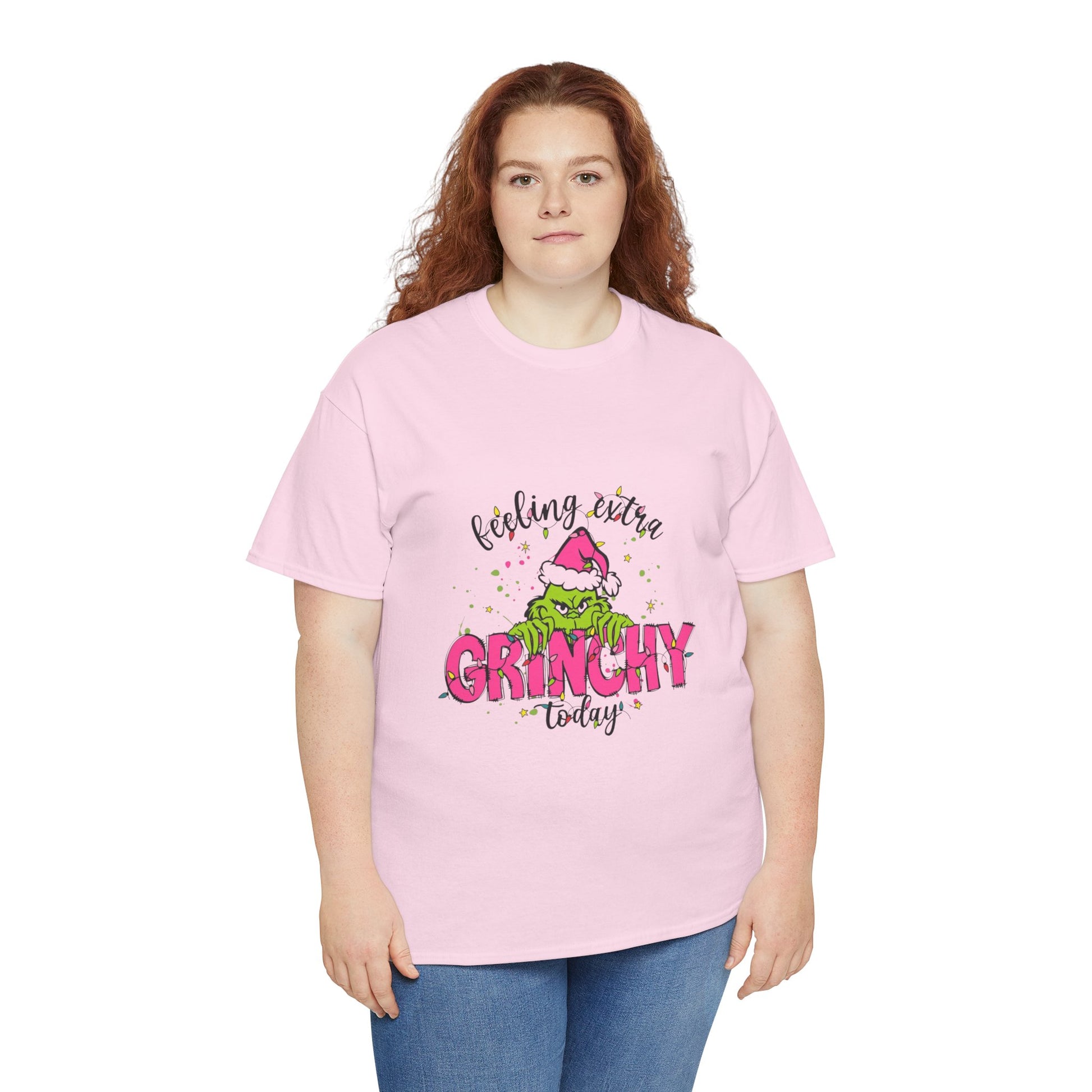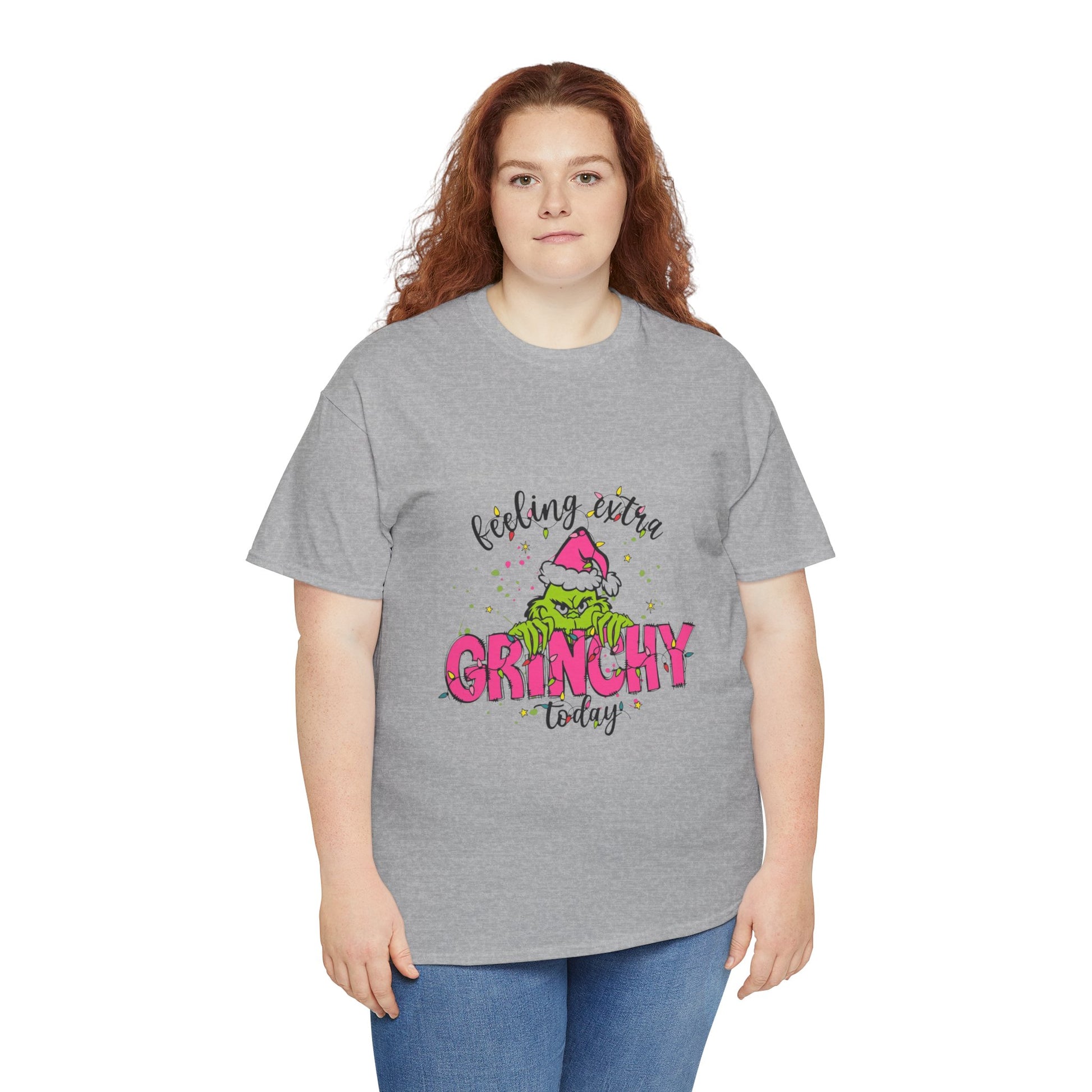 Feeling extra Grinchy today Christmas t-shirt perfect for spreading holiday cheer. This unisex heavy cotton tee is ideal for adults looking for a comfy and festive shirt to wear during the holiday season. The classic fit and crew neckline make it suitable for casual or semi-formal occasions